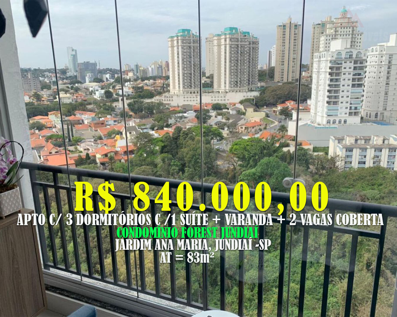Condominio Forest Jundiai - Jardim Ana Maria - Jundiaí/SPApto 83m² c/ 2 Dorms c/ 1 Suíte + 2 Vagas Loc: Cond. Forest Jundiaí, Jd Ana Maria, Jundiaí/SP.