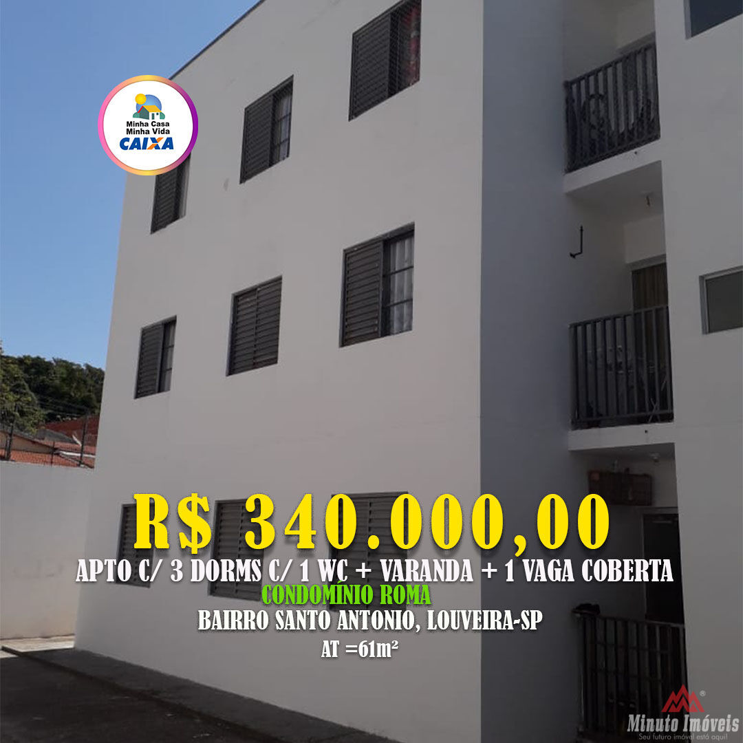 Apto 61 c/ 3 Dorms c/ 1wc + Varanda Loc: Condominio Roma, Santo Antonio, Louveira -SP