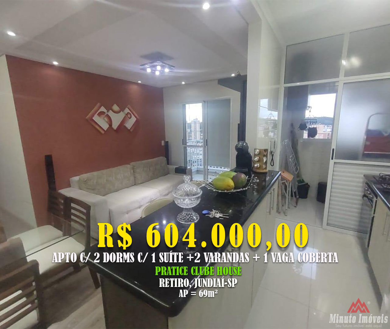 Apto 69m² c/2 Dorms c/1Suíte + 2 Varandas +1 Vaga Coberta. Loc: Condominio Pratice Club House, Retiro, Jundiaí-SP