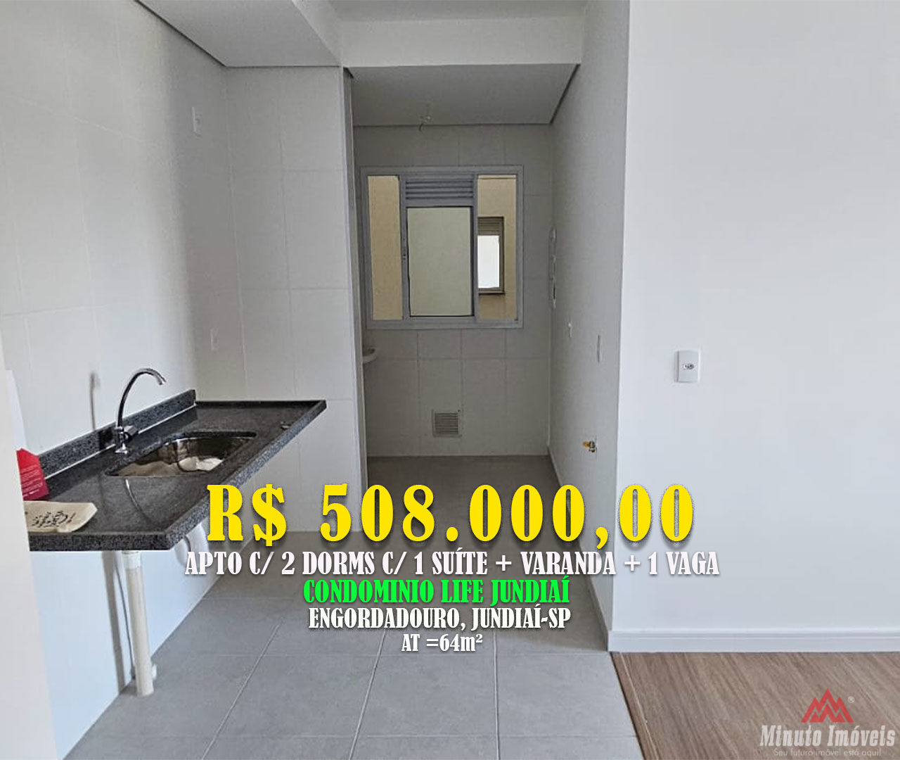 Apto c/ 64m² c/ 2 Dorms c/ 1 Suite + Varanda + 1 Vaga. Loc :Life Residencial Jundiaí, Engordadouro, Jundiaí-SP