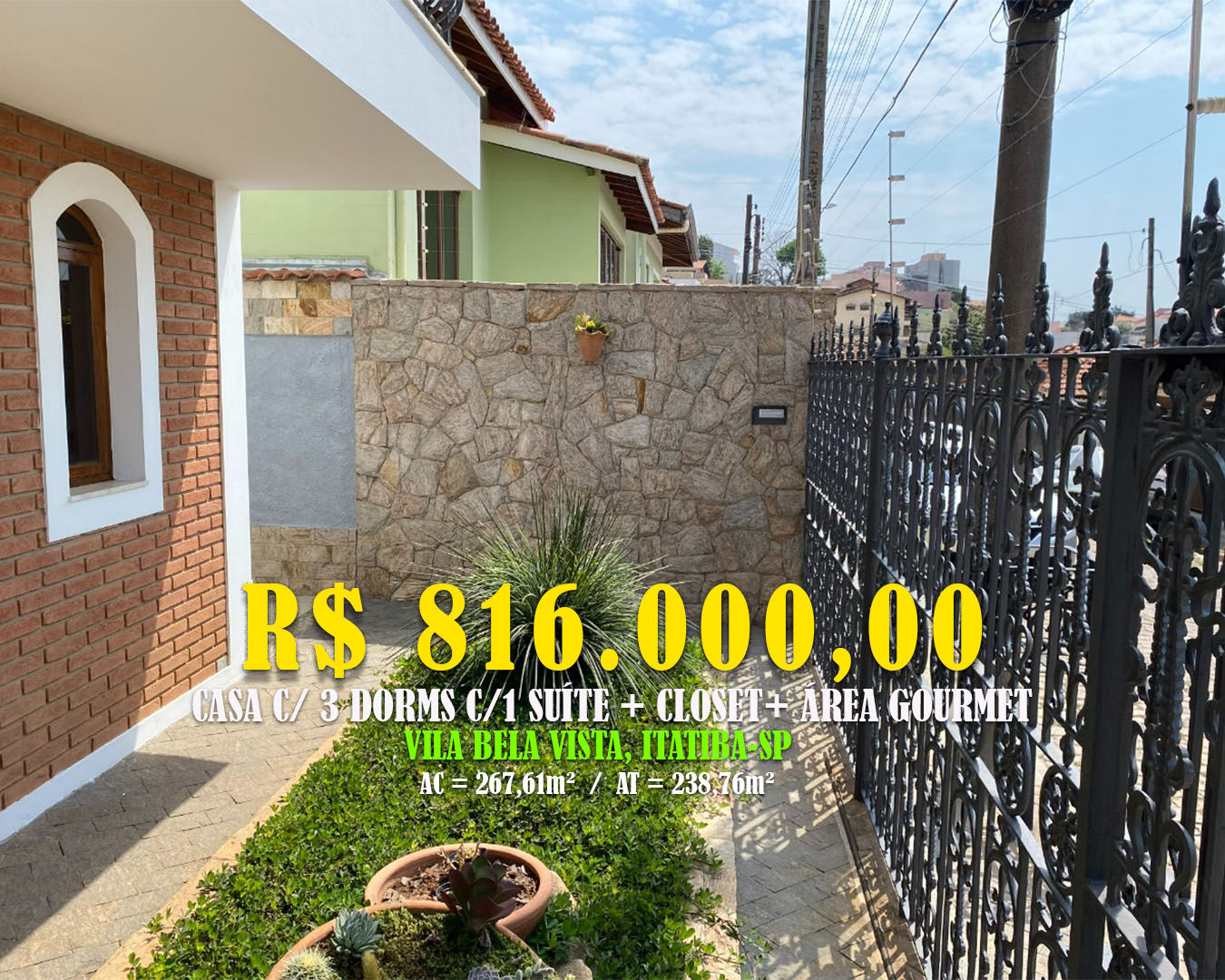 Vila Bela Vista - Itatiba/SPCasa 268,81m² c / 3 Dorms c/1 Suíte + Área Gourmet Loc: Vila Bela Vista, Itatiba/SP