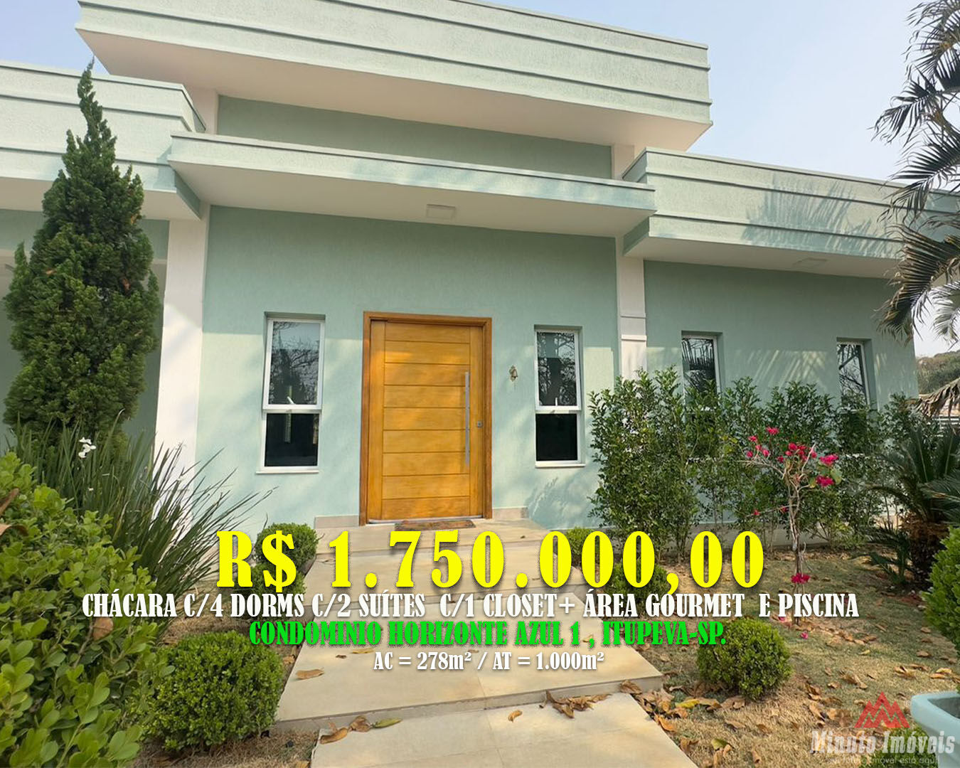 CONDOMINIO HORIZONTE AZUL, ITUPEVA -SP - Centro - Itupeva/SPChácara 278m² c 4 / Dorms c / 1 Closet + 2 Suites + Área Gourmet e Piscina. Loc: Condominio Horizonte Azul 1, Itupeva -SP