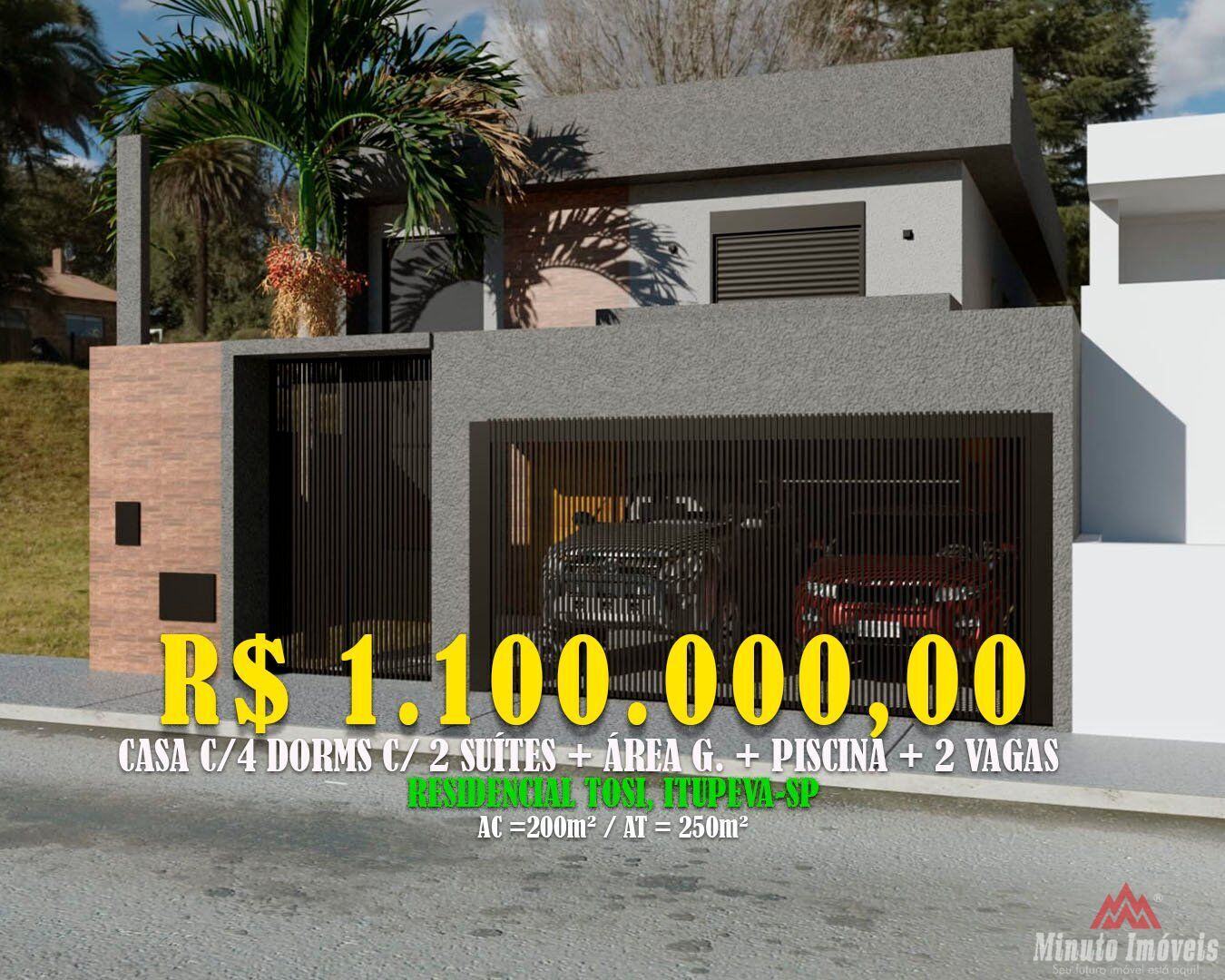 Residencial Tosi - Itupeva/SPCasa 200m² c/ 4 Dorms c/ 2 Suites + Area Gourmet + Piscina + 2 Vagas. Loc: Residencial Tosi, Itupeva Valor = R$ 1.100.000,00 Ac = 200m² / At= 250m²