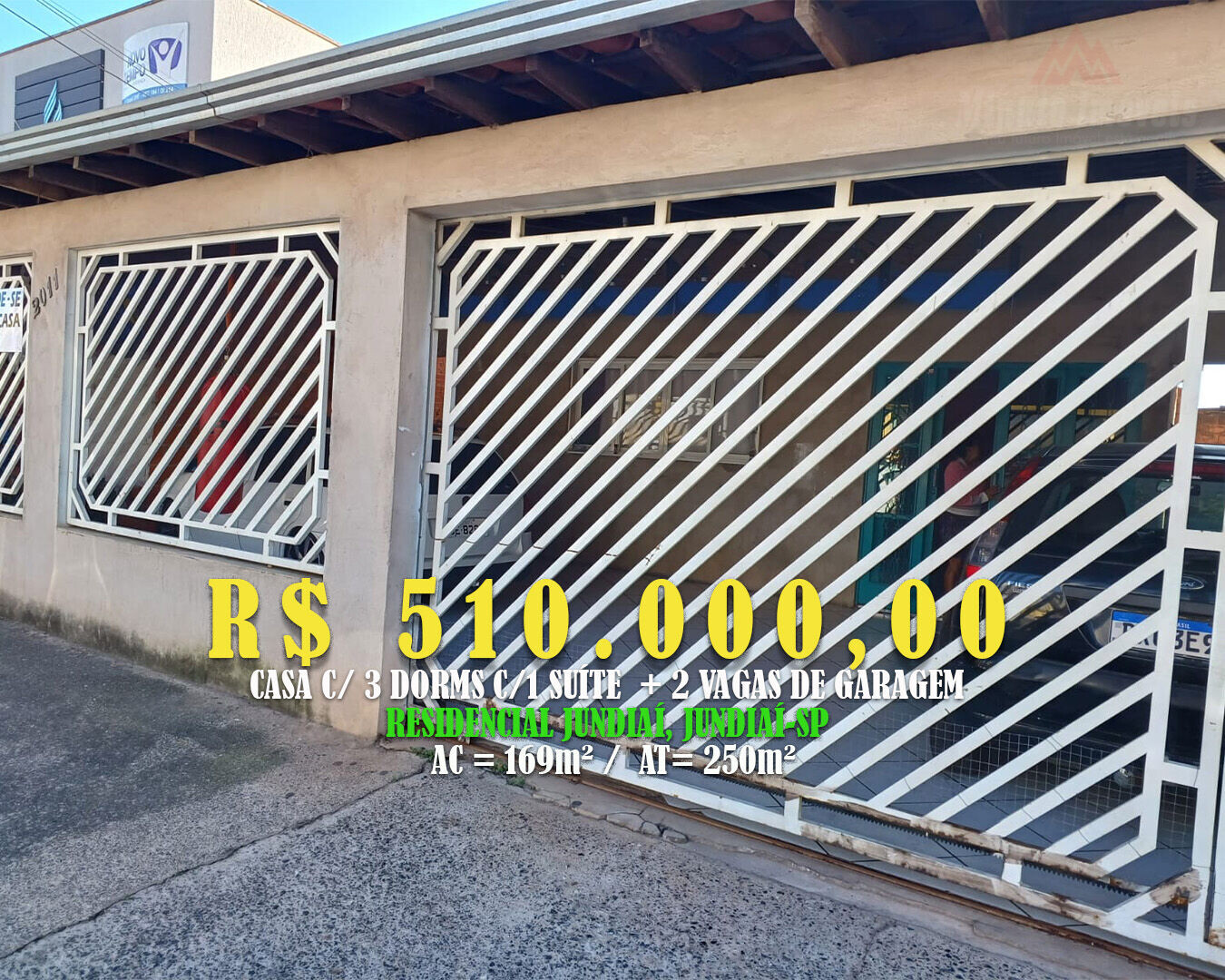 Casa 169 m² c/ 3 Dorms c/ 1 Suíte, Parque Residencial Jundiaí, Jundiaí-SP