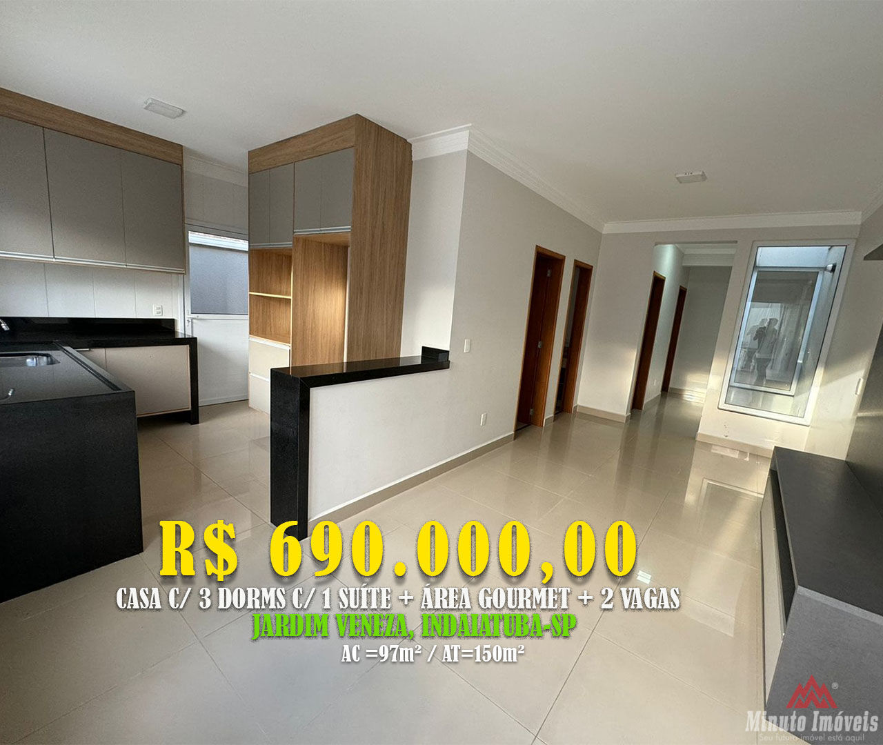 Casa térrea 97m² c/ 3 Dorms + 2 Vagas Coberta Loc: Jardim Veneza, Indaiatuba-SP