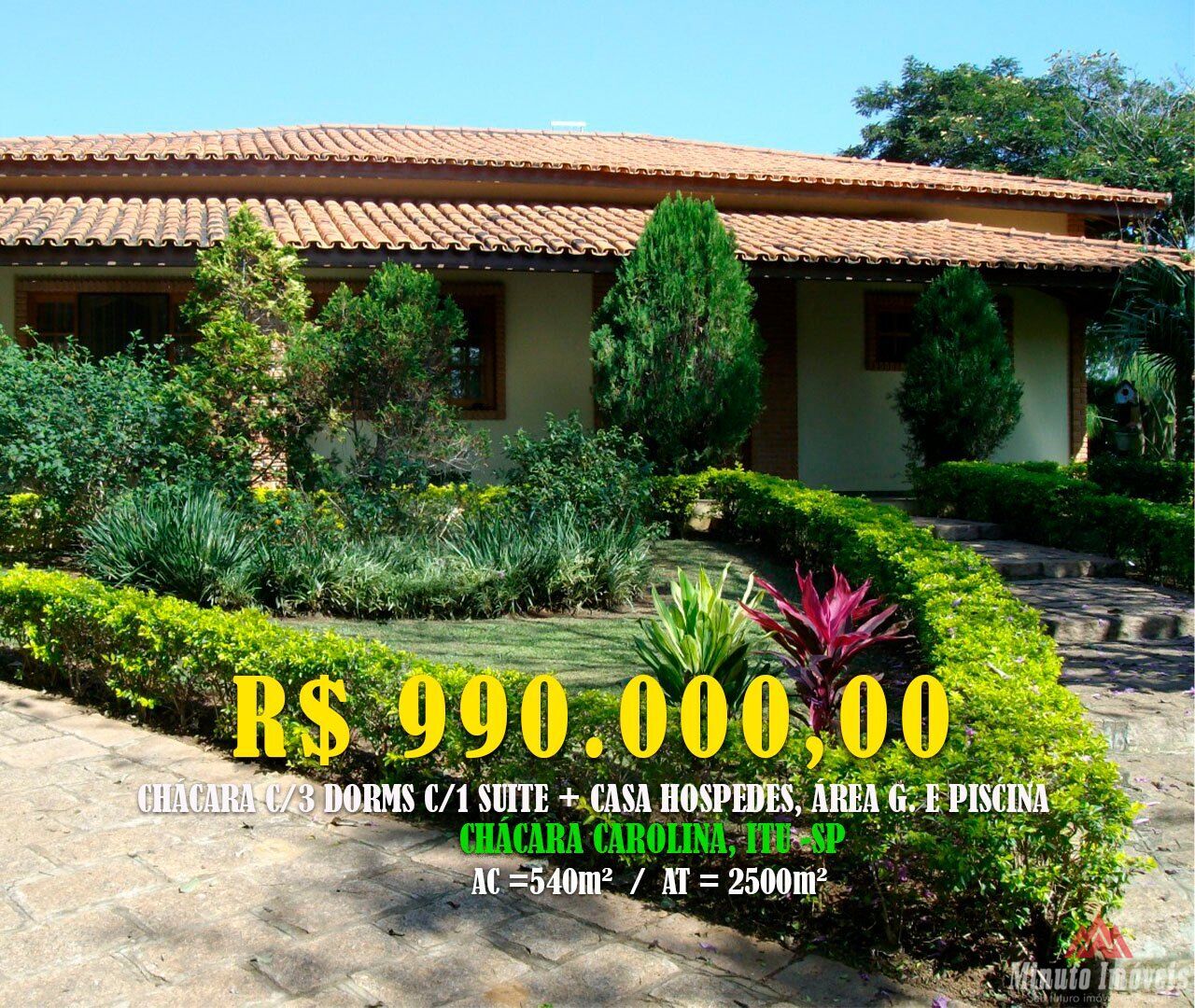 Chácara Flórida - Itu/SPChácara à Venda em Itu – 2.500m² de Puro Conforto e Lazer Endereço: Chácaras Carolina, Itu/SP Valor: R$ 990.000,00