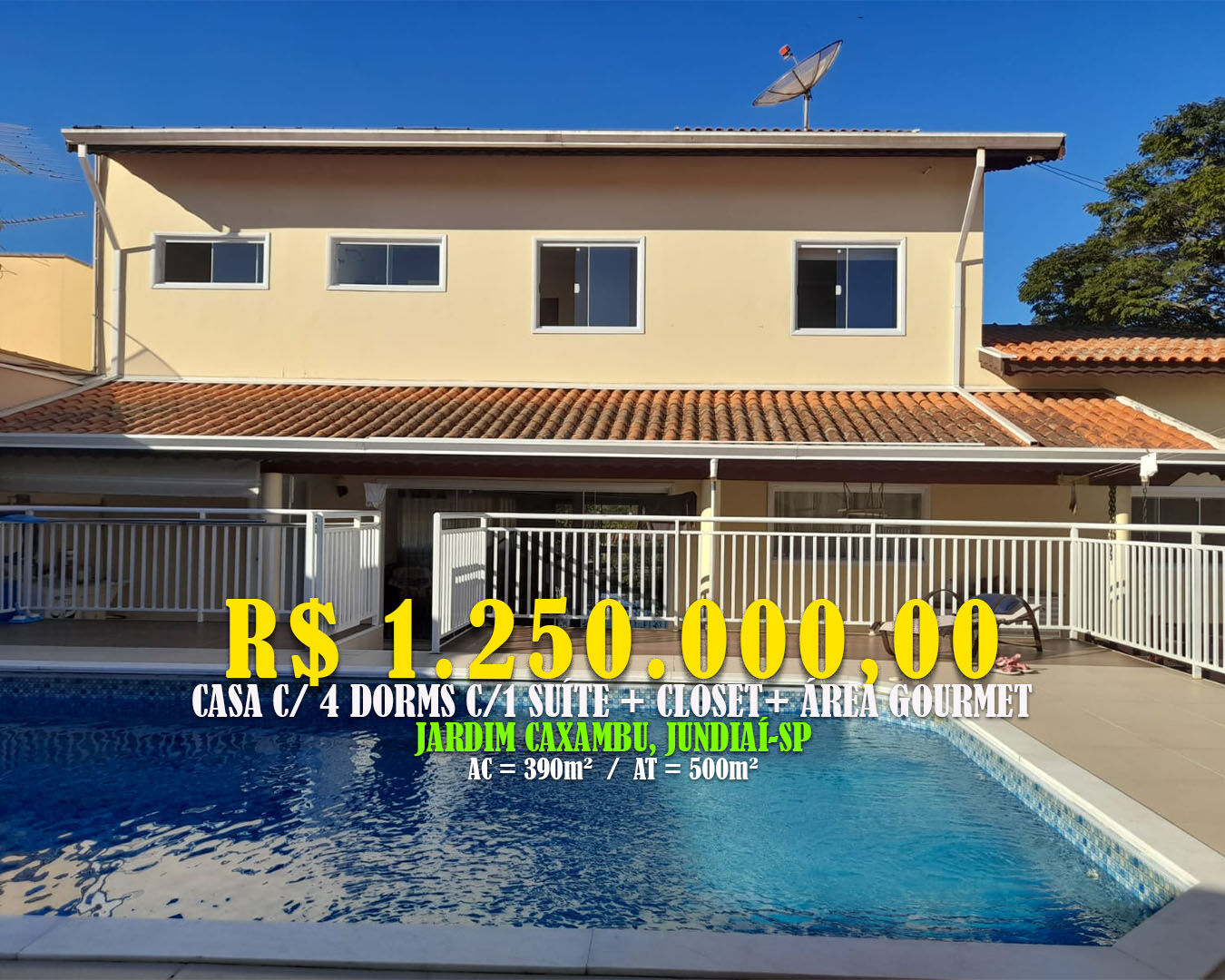 Caxambu - Jundiaí/SPLinda Casa 390m² c/ 4 Dorms c/ 1 Suíte + Piscina +Área Gourmet Valor 1.250.000,00 Loc: Jardim Caxambu, Jundiaí/SP