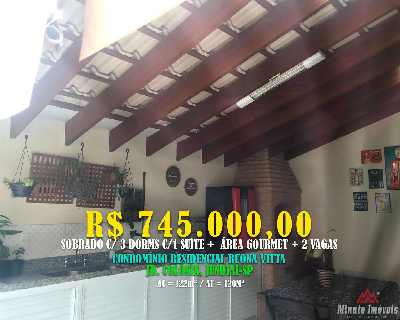 Sobrado. de 122m² c/3 Dorms c/ 1 Suíte + 2 Vagas Loc: Condomínio Buona Vitta - Colônia, Jundiaí-SP