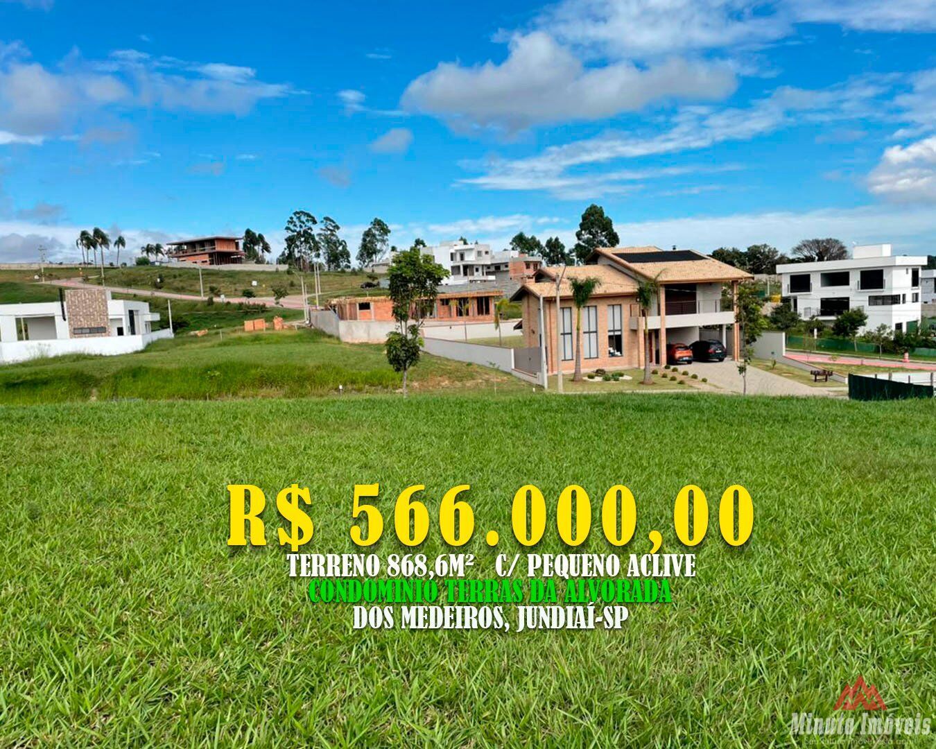 Terreno 868,6 m² com pequeno aclive. Loc: Condomínio Terras da Alvorada , Jundiaí-SP Valor = R$ 566.000,00